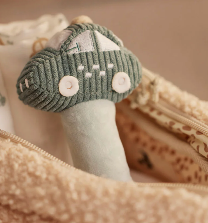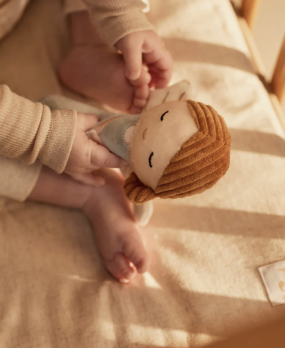 Around three months, babies discover that they can grasp and move objects. A rattle is the perfect toy at this stage: lightweight, easy to hold, and with a gentle sound that sparks curiosity. Choose between cute Teddy Bears, On the Go with a cute car or with a Fairy for little princesses.