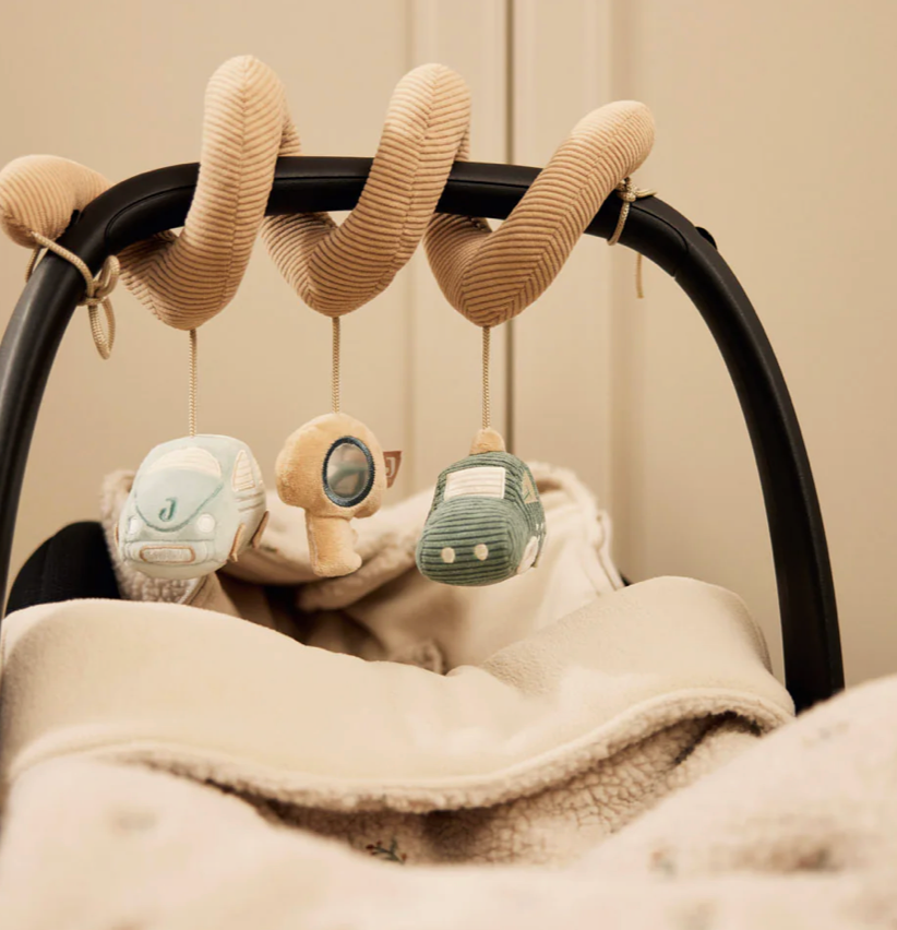 Activity spirals and pram chains by Jollein are delightful, multitasking accessories that turn everyday moments into playful discoveries for your little one. Designed with soft fabrics, engaging textures and cute characters, they easily attach to prams or car seats to entertain and stimulate babies on the go. These charming toys not only keep your baby happy and curious but also support sensory development through touch, sight and movement.